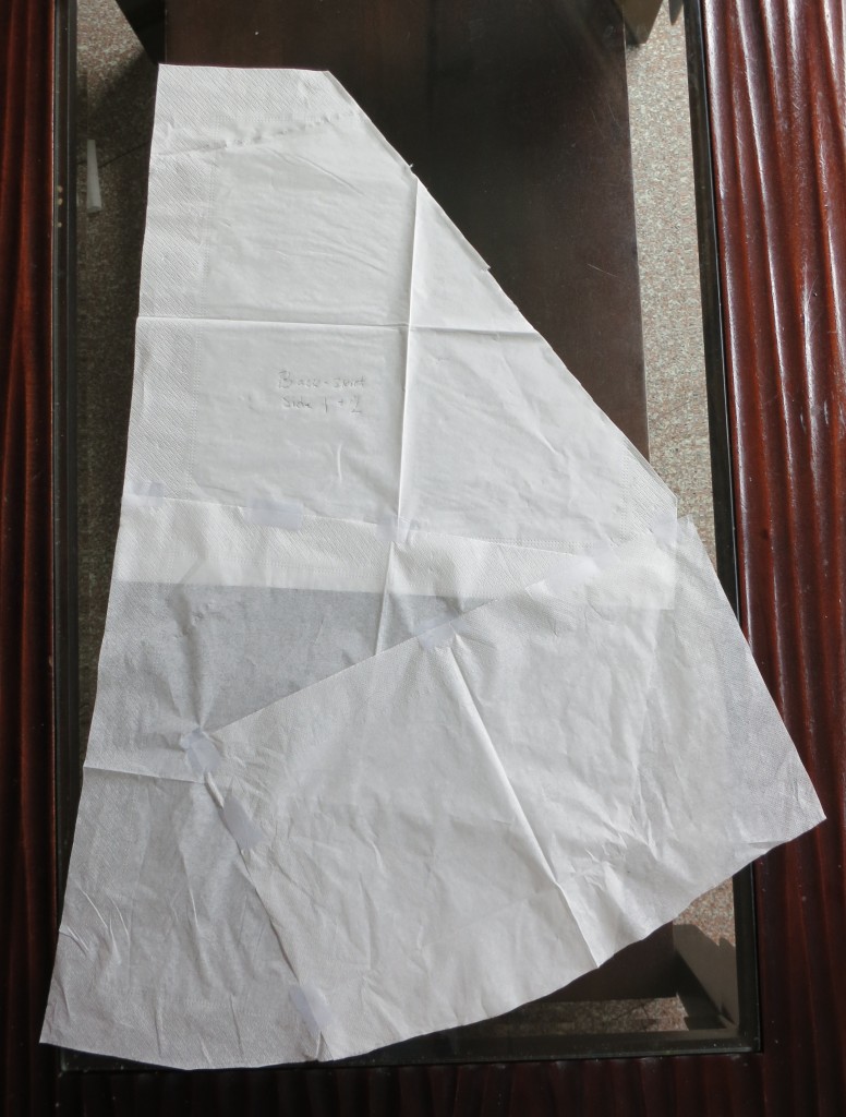 Part of the skirt pattern made out of napkins: